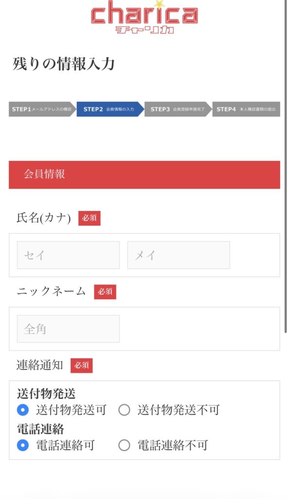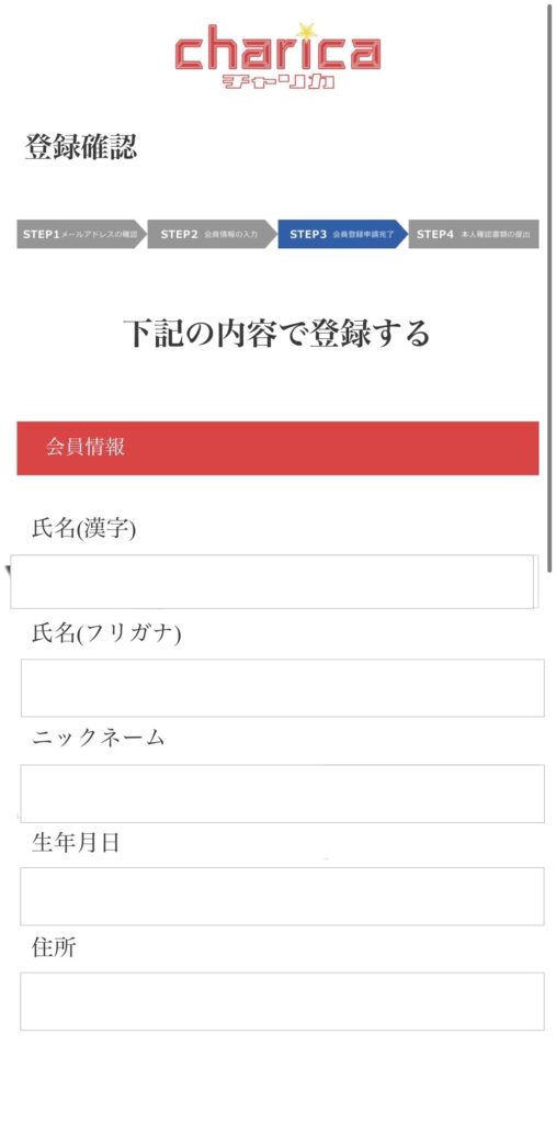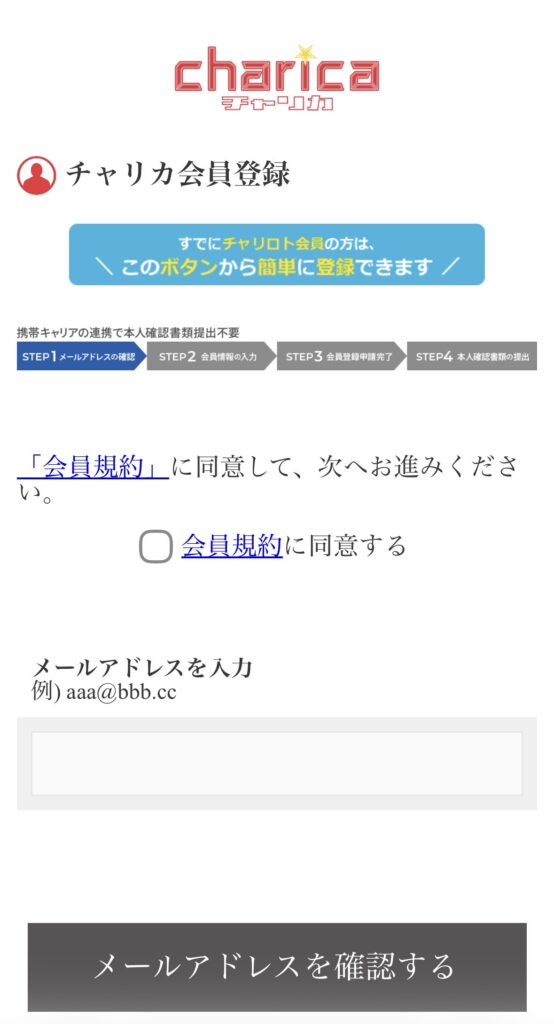 チャリカ会員登録